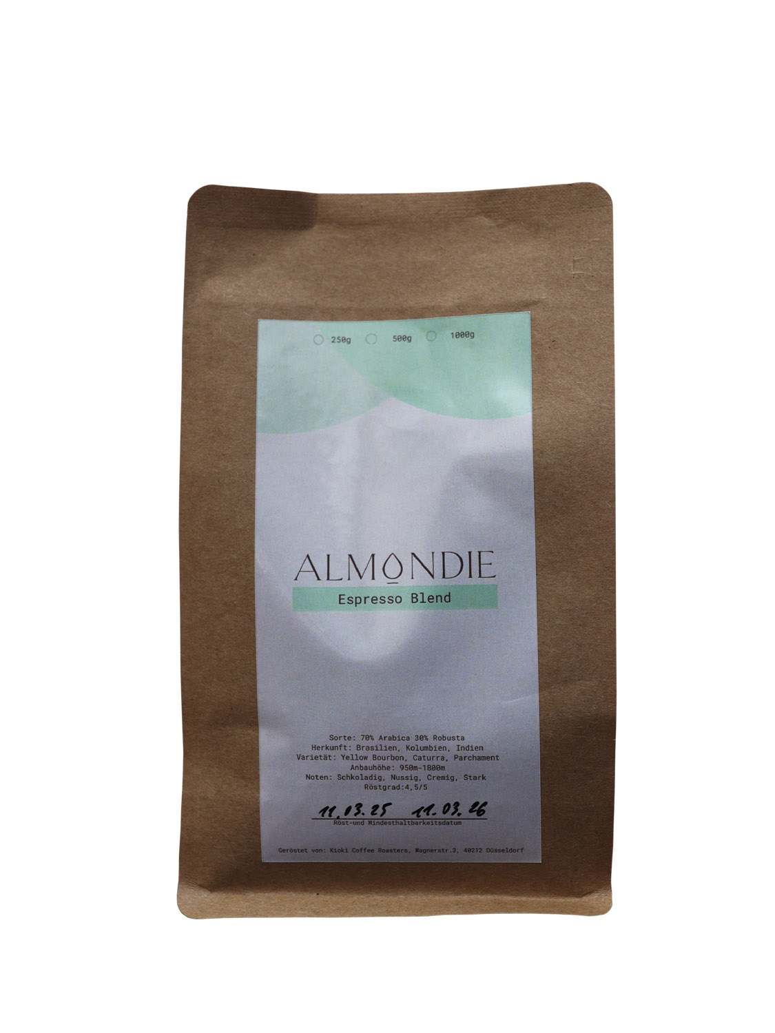Almondie Bohnen – schokoladig, nussig, fein, cremig im Geschmack – so soll Kaffee sein. Ein runder Genuss, der jeden Moment veredelt.